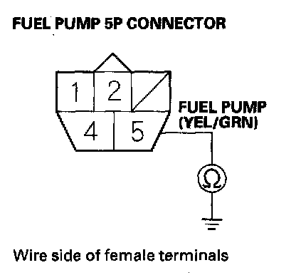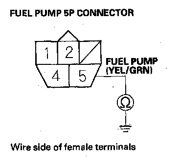 44. Check for continuity between fuel pump 5P connector terminal No. 5 and body ground.