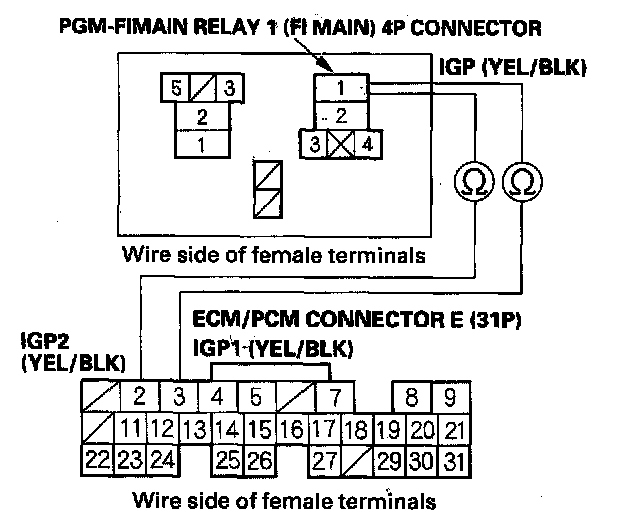 - Repair open in the wire between the No. 32 IGP (15 A) fuse and PGM-FI main relay 1 (FI MAIN).