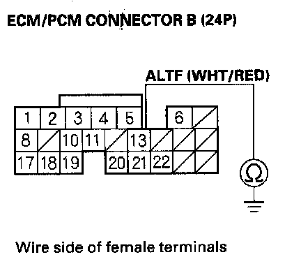 8. Check for continuity between body ground and ECM/PCM connector terminal B13.