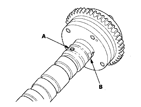 6. Seal the advance holes (A) and retard holes (B) in the No. 1 camshaft journal with tape.
