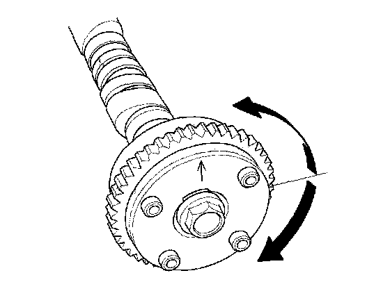 5. Check that the variable valve timing control (VTC) actuator is locked by turning the VTC actuator counterclockwise. If not locked, turn the VTC actuator clockwise until it stops, then recheck it. If it is still not locked, replace the VTC actuator.