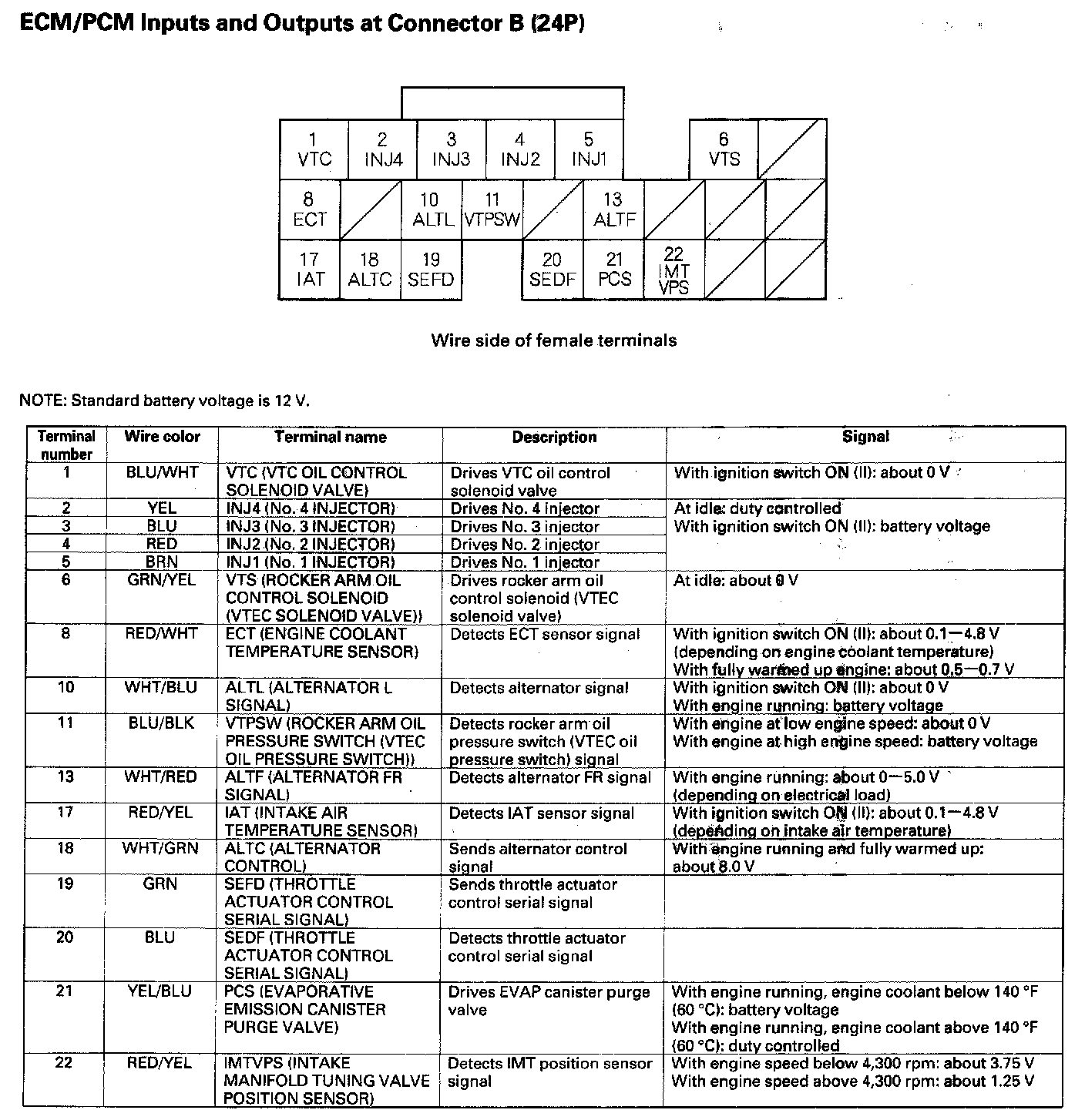 ECM/PCM Inputs And Outputs At Connector B (24P):