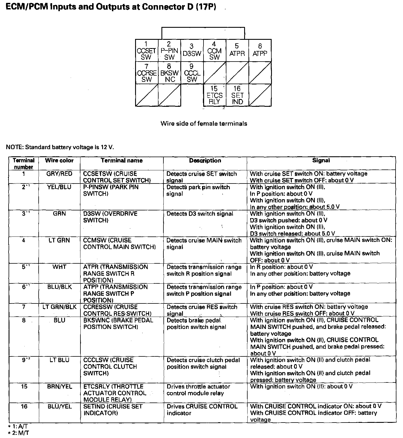 ECM/PCM Inputs And Outputs At Connector D (17P):