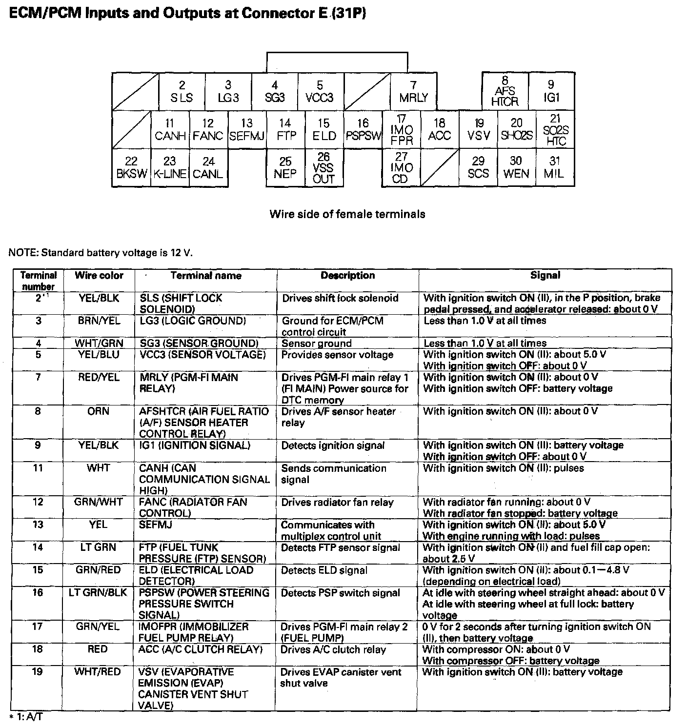ECM/PCM Inputs And Outputs At Connector E (31P) Part 1: