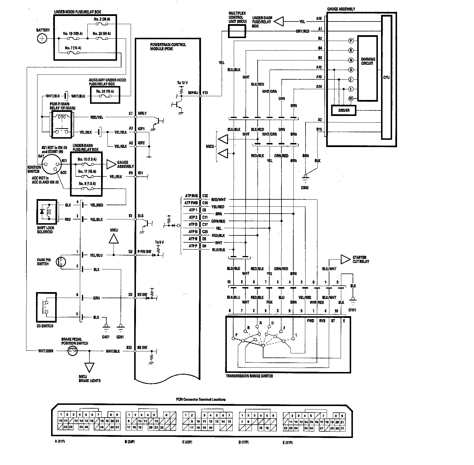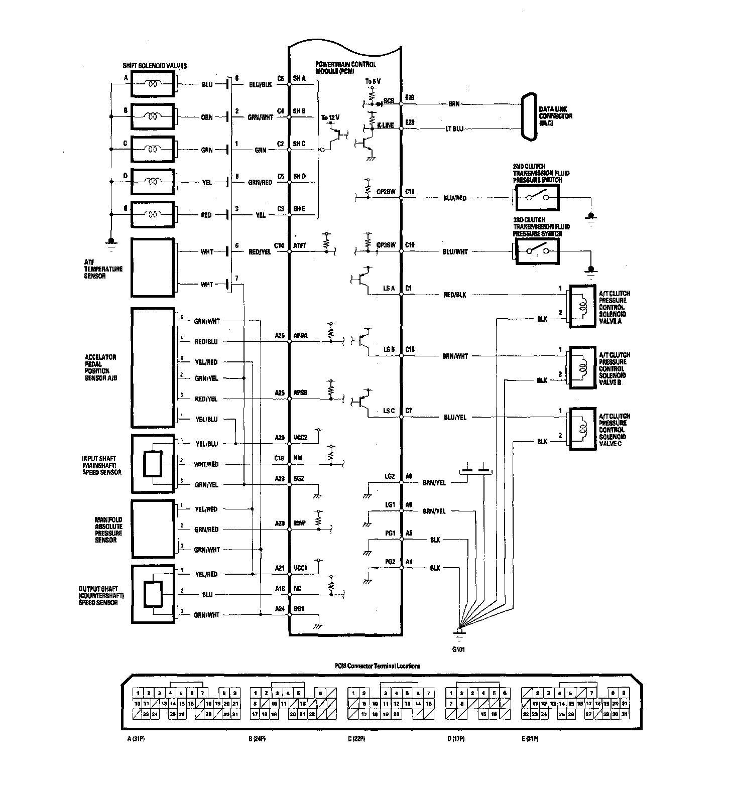 PCM A/T Control System Circuit Diagram: