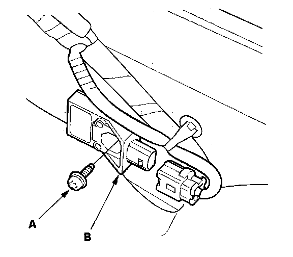 6. Using a Torx T30 bit, remove the Torx bolt (A), then remove the side impact sensor (first) (B).