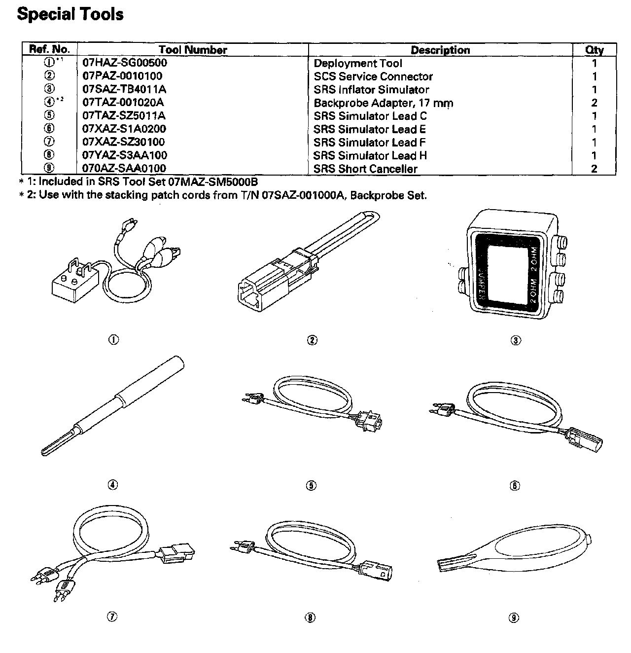 Restraints - Special Tools: