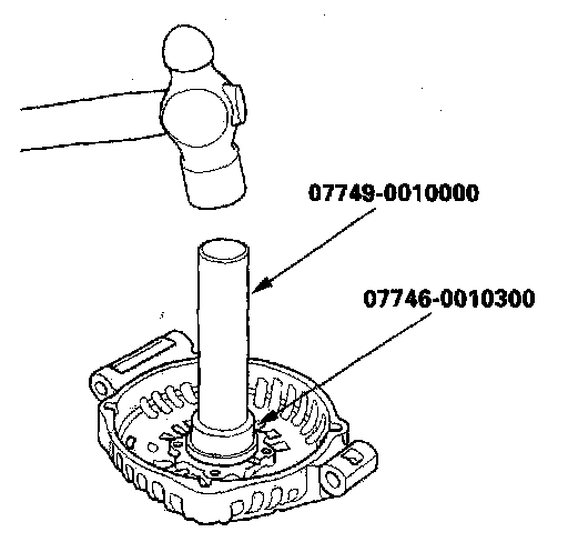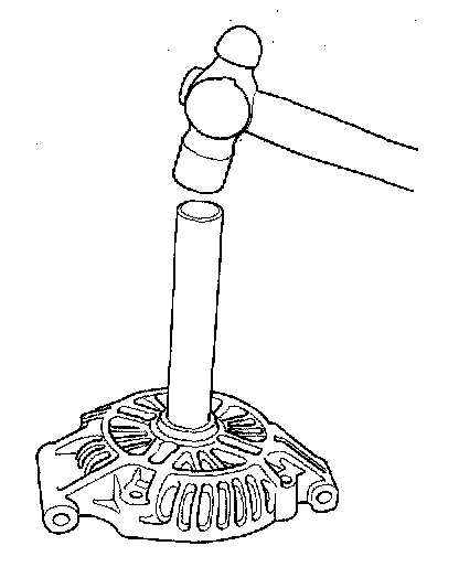 14. With a hammer and the special tools, install a new front bearing in the drive-end housing.