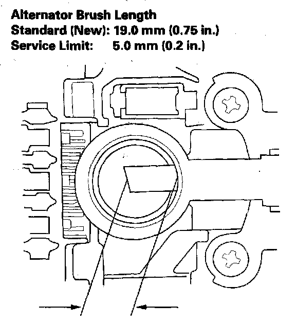 - If either brush is shorter than the service limit, replace the rear housing assembly.