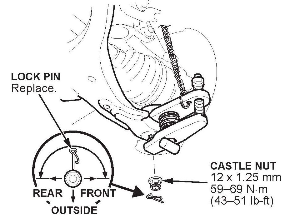 Don't loosen the castle nut, and do not torque the castle bolt more than 69 N.m (51 lb-ft).
