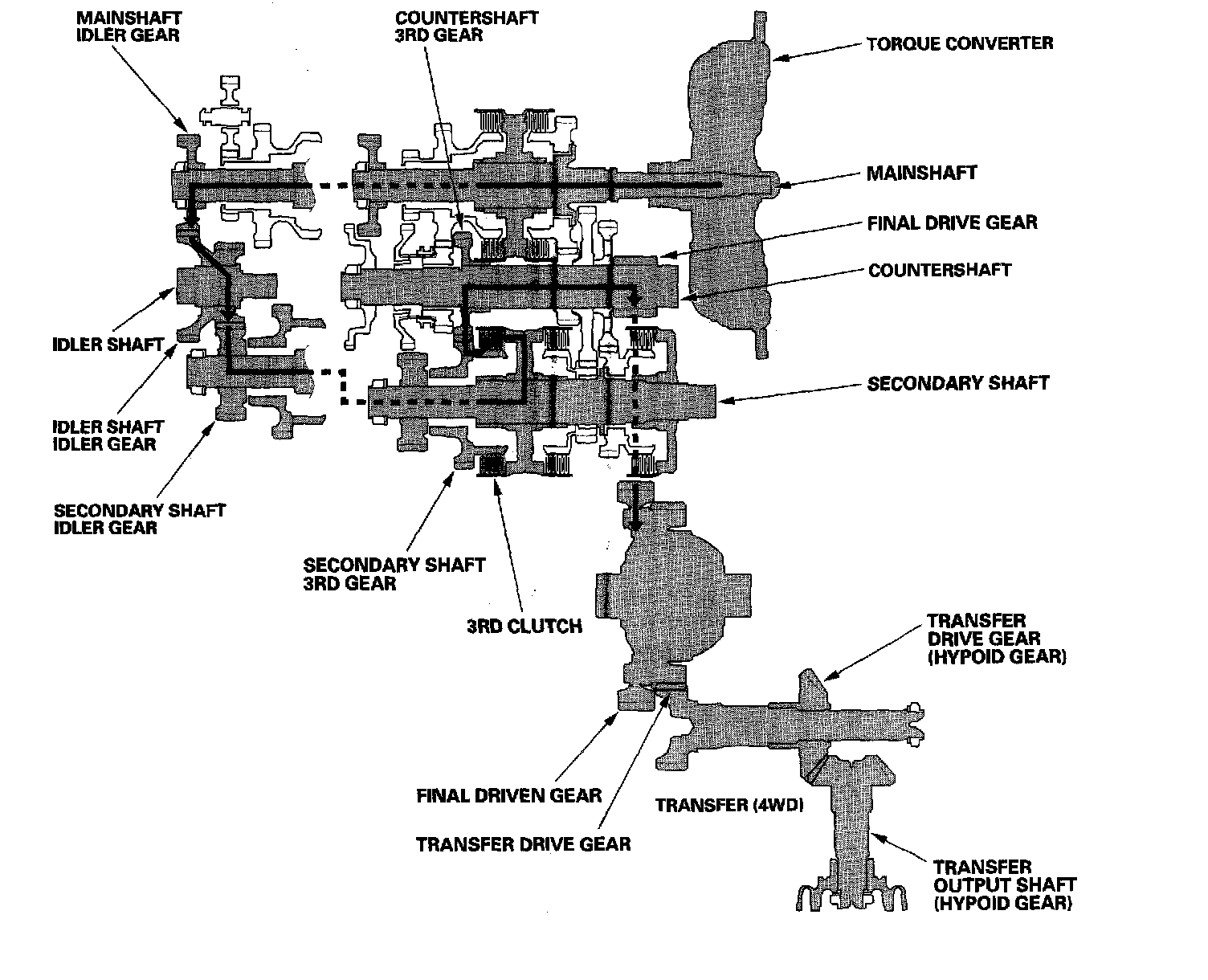 ^ Hydraulic pressure is applied to the 3rd clutch, then the 3rd clutch engages the secondary shaft 3rd gear with the secondary shaft.