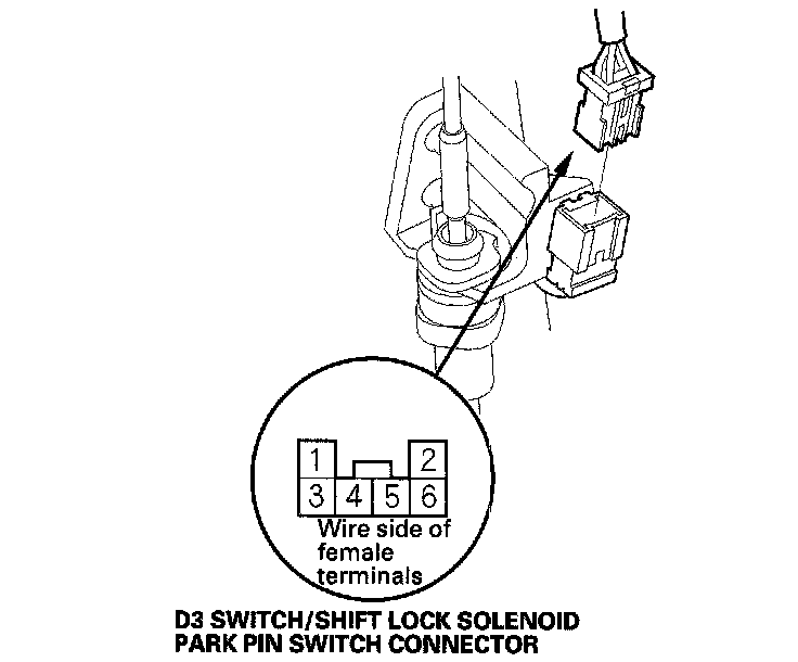 2. Disconnect the D3 switch/shift lock solenoid/park pin switch connector.
