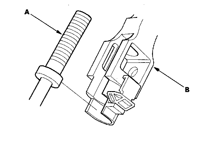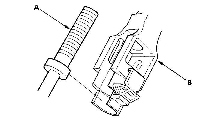 17. Install the shift cable end (A) in the shift cable end holder (B). Keep the shift cable end and end holder free of grease.