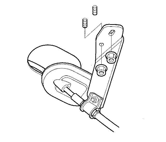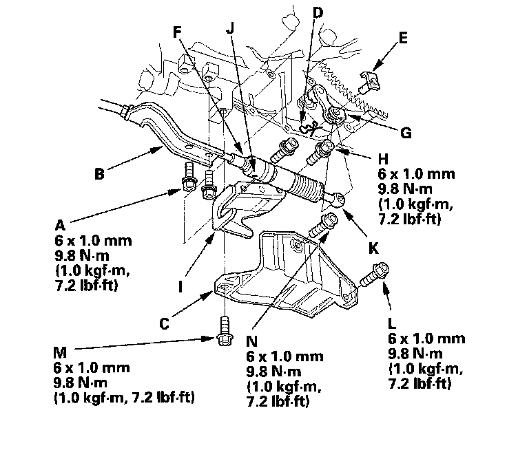 - 3 Remove the bolts securing the shift cable bracket (F).