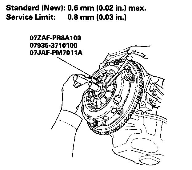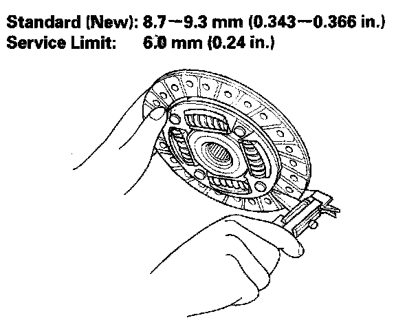 9. Measure the clutch disc thickness. If the thickness is less than the service limit, replace the clutch disc.