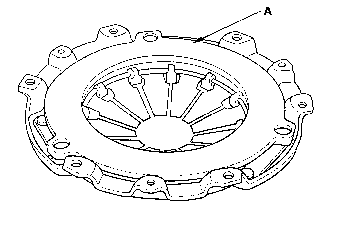 4. Inspect the fingers of the diaphragm spring (A) for wear at the release bearing contact area.
