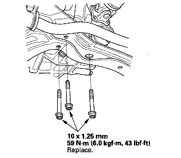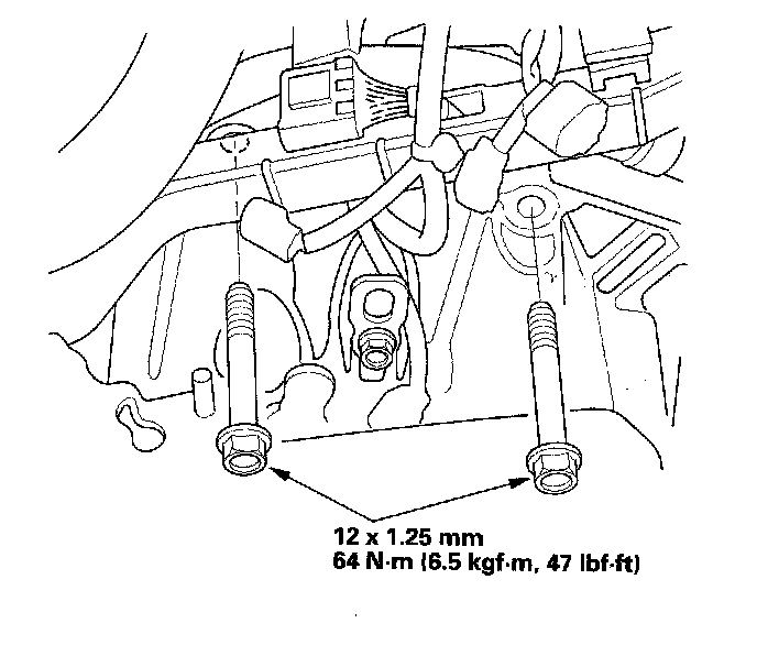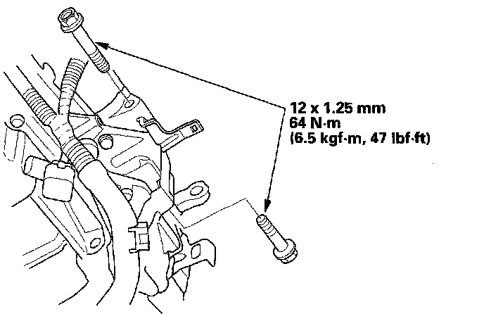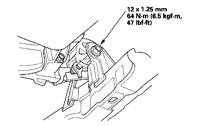 19. Loosen the front engine mount bracket mounting bolt, then tighten the front engine mount bracket mounting bolt.