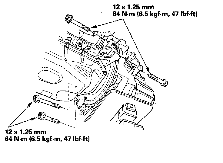 6. Install the four transmission lower mounting bolts.