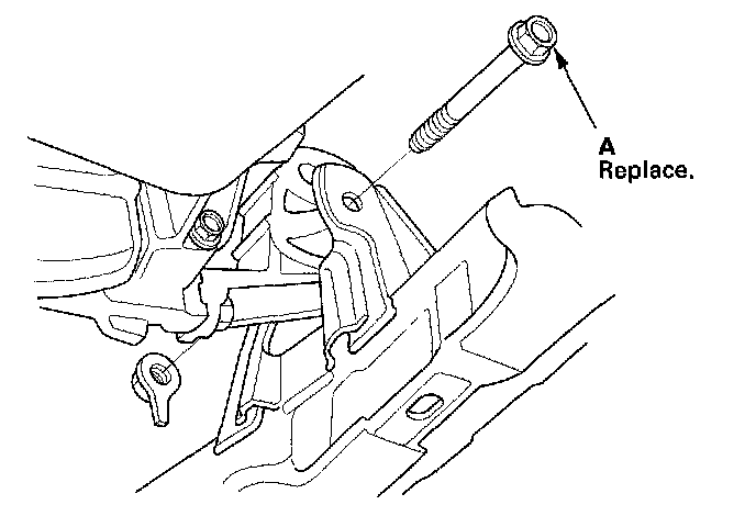 13. Loosely install the front engine mount bracket mounting bolt (A).