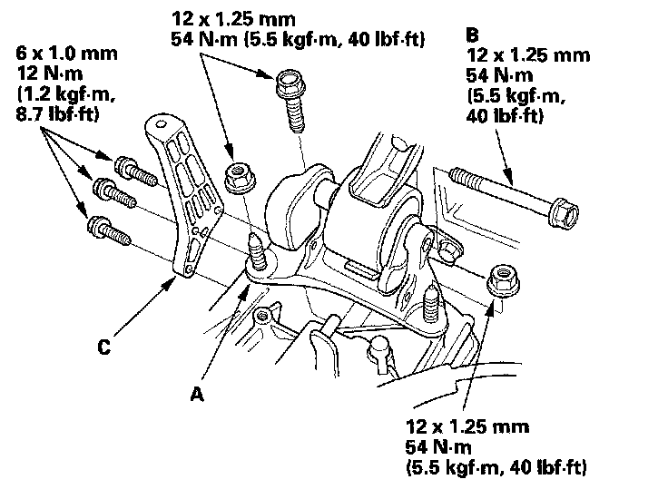 12. Install the three rear mounting bolts for the transmission rear mount.