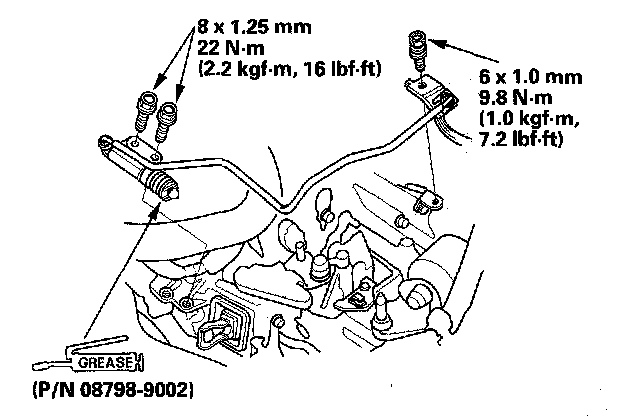 25. Apply super high temp urea grease (P/N 08798-9002) to the end of the cylinder rod. Install the slave cylinder. Be careful not to bend the clutch line.