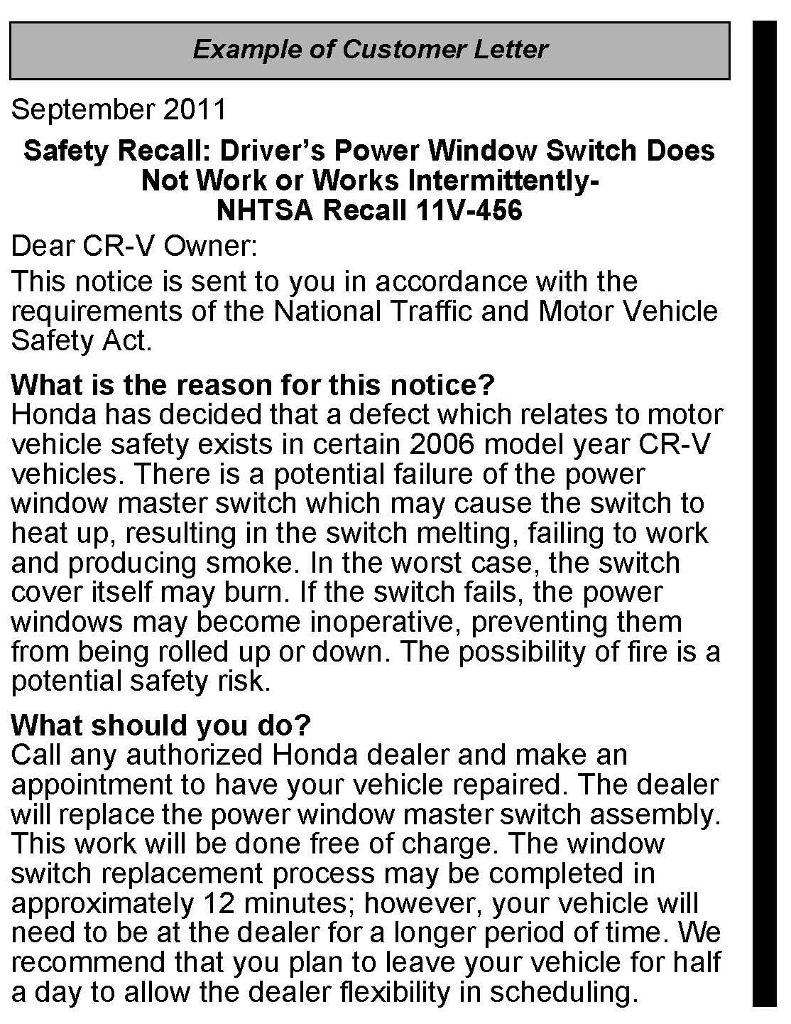 Recall - Driver's Power Window Sw. Inop. Or Intermittent
