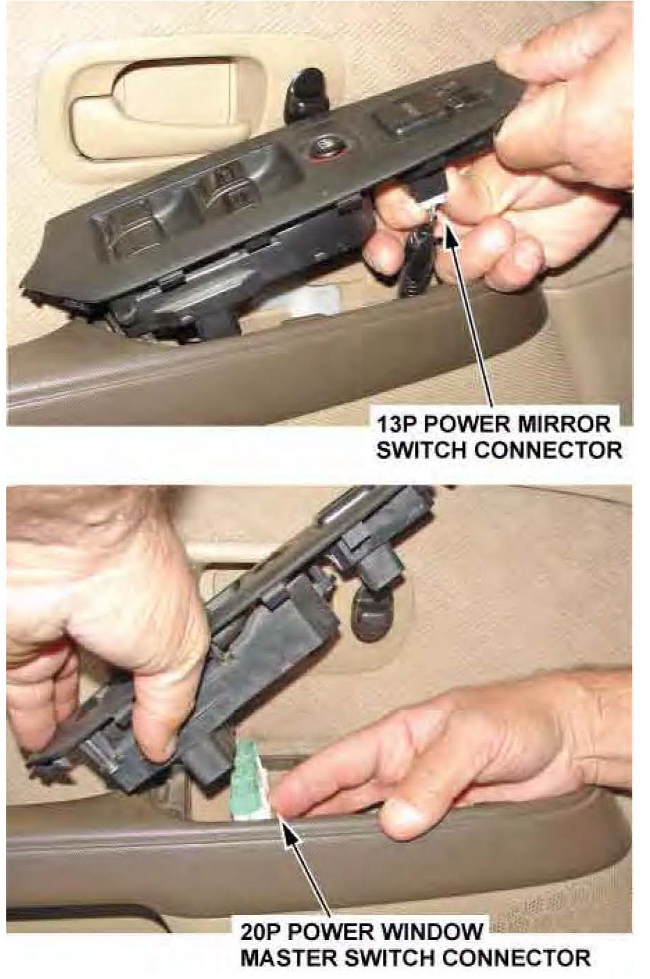 2. Disconnect the two connectors from the driver's power window master switch.