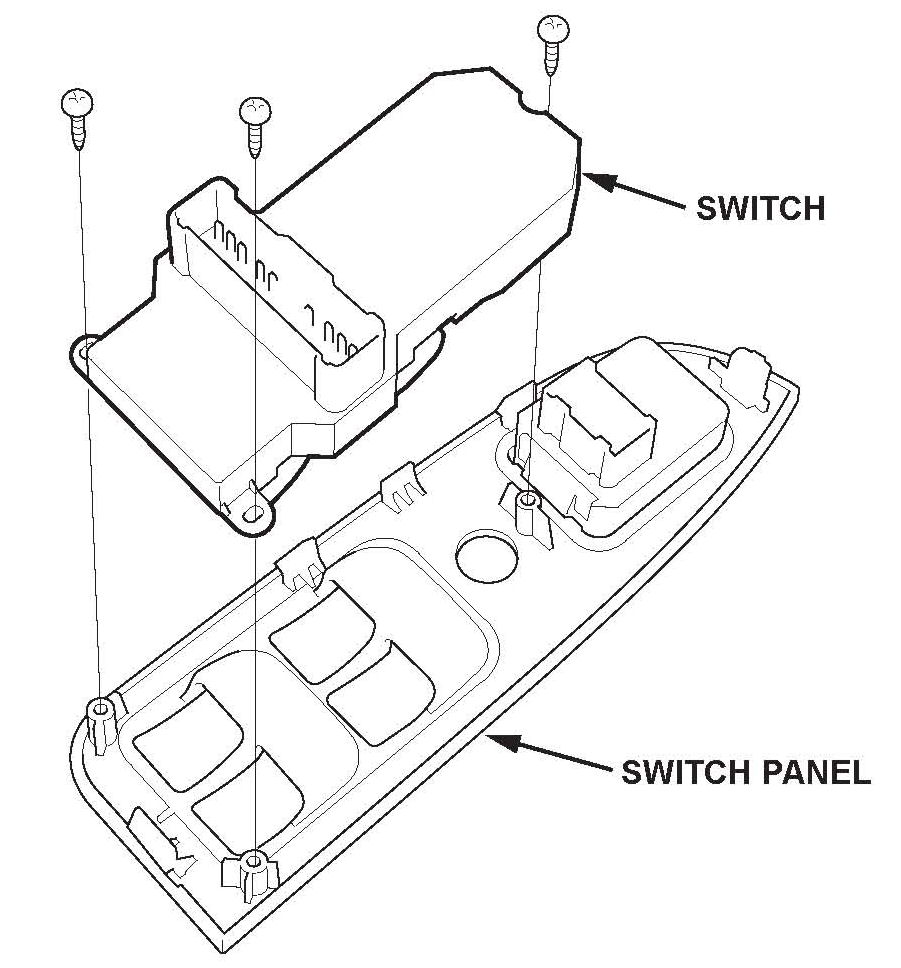 4. Using the three screws removed in step 3, install the new switch to the switch panel.