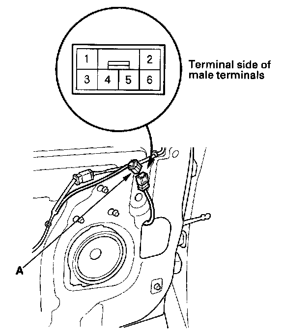 2. Disconnect the 6P connector (A) from the driver's window motor.