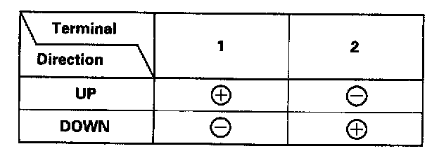 - Connect an analog voltmeter between the No. 3 (+) and No. 4 (-) terminals, and run the window motor down or up. The voltmeter needle should move back and forth alternately between 0 V and about 5 V (a digital voltmeter should show about 2.5 V).