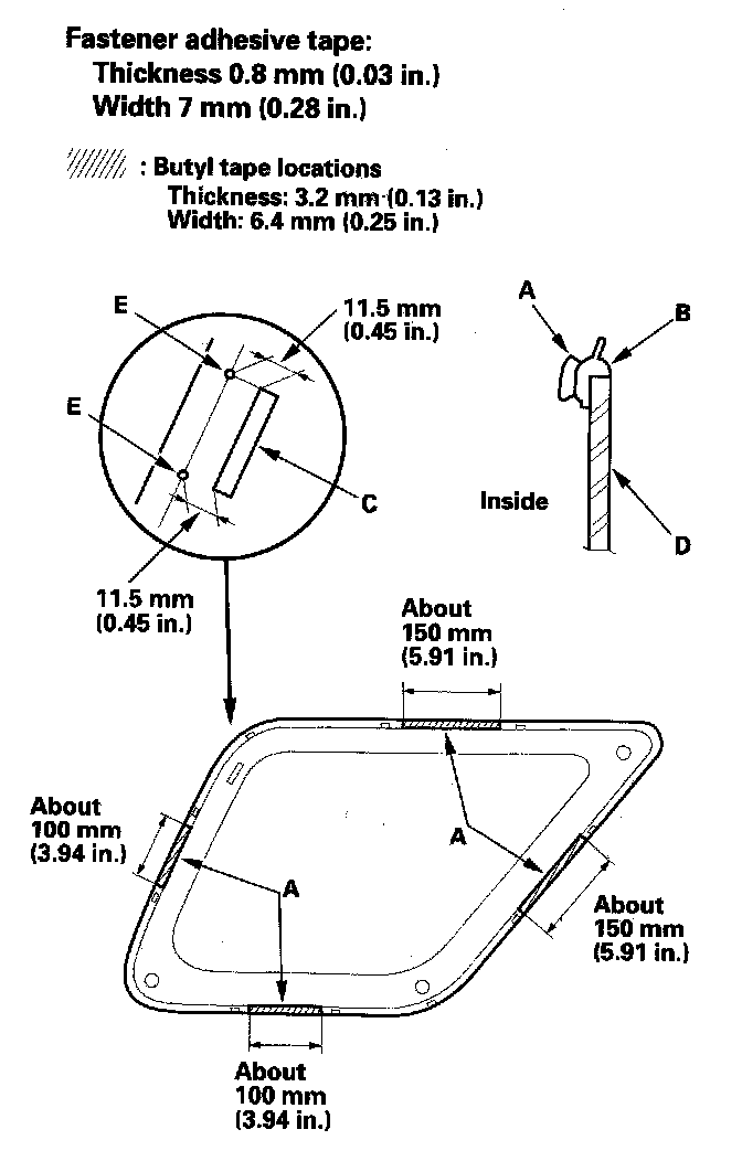 - If any of the clips are broken, the quarter glass can be reinstalled using butyl tape.