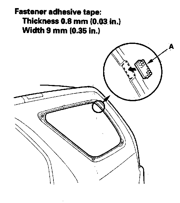 8. If a new quarter glass will be installed, attach the fastener (A) to the body with adhesive tape. Be sure the fastener lines up with the body contour.