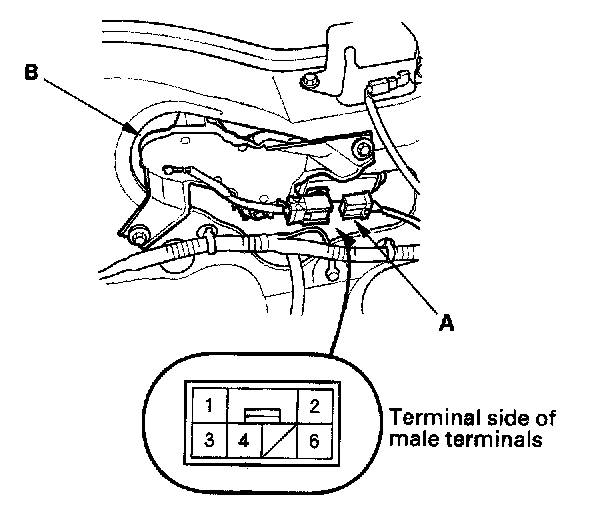 2. Disconnect the 4P connector (A) from the wiper motor (B).