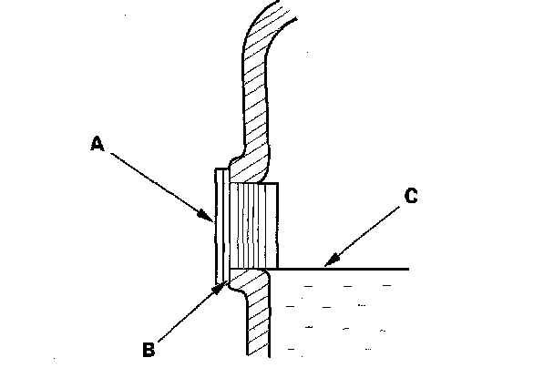 3. Remove the oil filler plug (A) and the sealing washer (B), then check the condition of the fluid, and make sure the fluid is at the proper level (C).