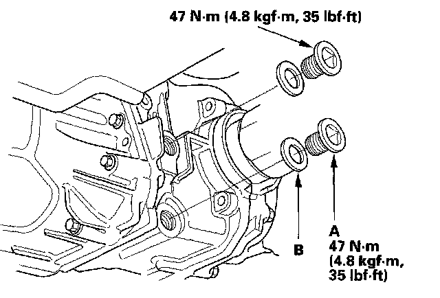 5. If the fluid is dirty, remove the drain plug (A) and the sealing washer (B) then drain the fluid.