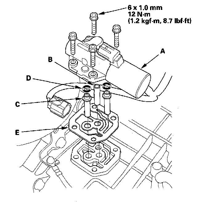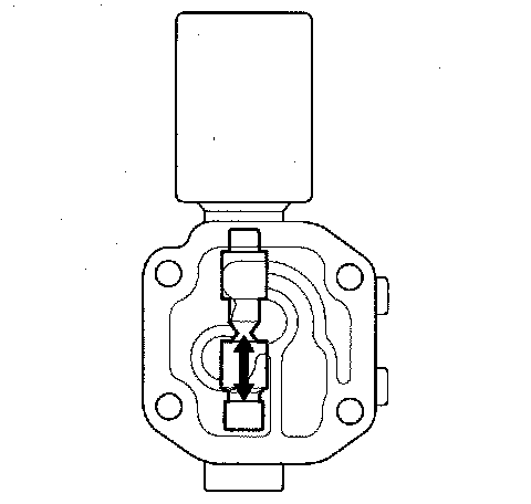NOTE: You can see valve movement through the fluid passage in the mounting surface of the A/T clutch pressure control solenoid valve A body.