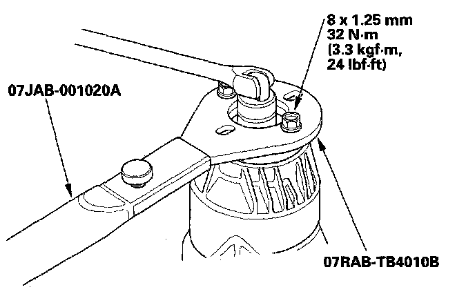 4. Loosen the locknut (A) counterclockwise so its tab (B) comes out from the groove (C) in the clutch guide.