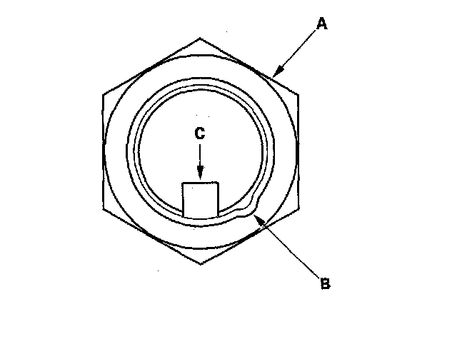 5. Tighten the locknut (A) until its tab (B) aligns with the groove (C).