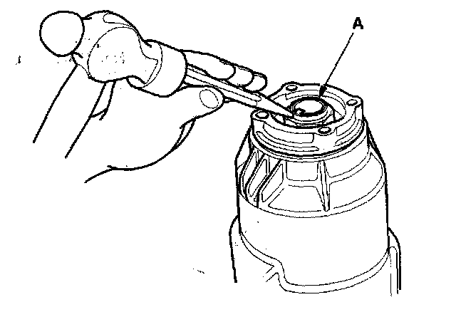 12. Stake the locknut tab (A) into the groove in the clutch guide.