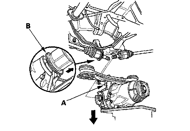 NOTE: Be careful not to damage the driveshaft ring (B) when prying out the driveshaft inboard joints.