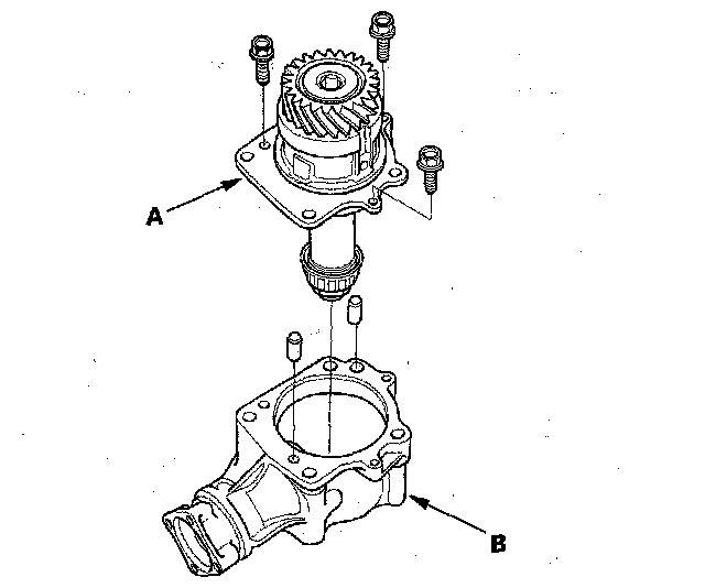24. Secure the transfer housing (A) in a bench vise (B) with soft jaws.