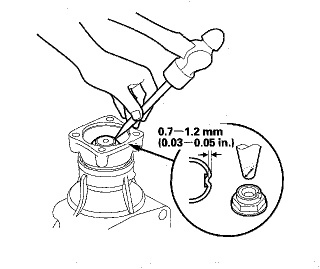 8. Tighten the locknut while measuring the starting torque, so the starting torque is within 1.08 - 1.47 Nm (11.0 - 15.0 kgf-cm, 9.55 - 13.0 inch lbs.).