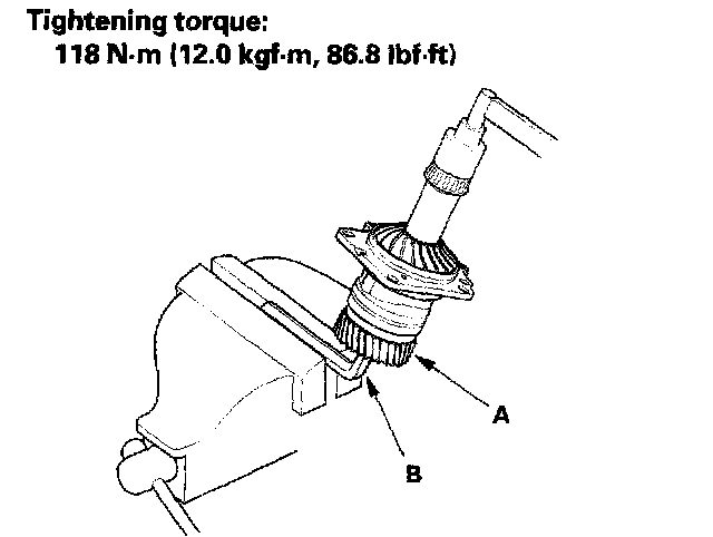 ^ Rotate the companion flange several times to seat the tapered roller bearing, then measure the starting torque.