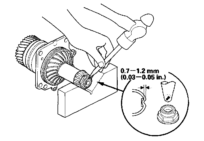 26. Stake the locknut into the transfer driven gear shaft using a 3.5 mm punch.