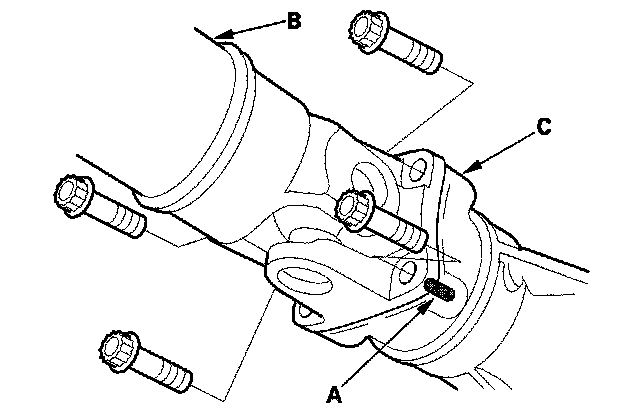 4. Make reference marks (A) across the propeller shaft (B) and the companion flanges (C).