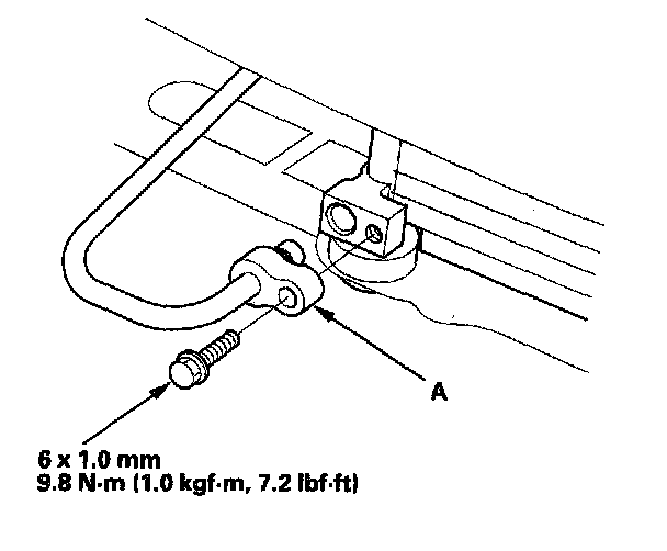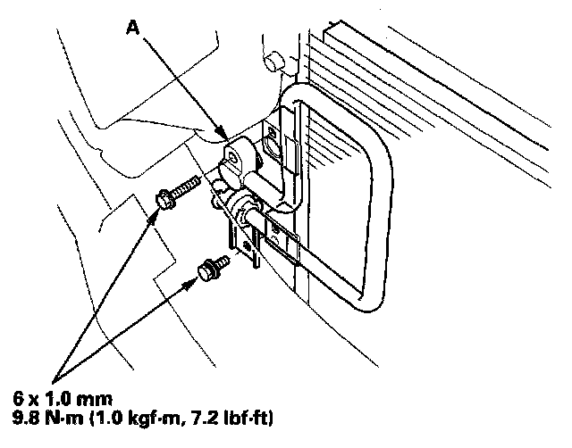 4. Remove the bolt, then disconnect the receiver line (A) from the A/C condenser.