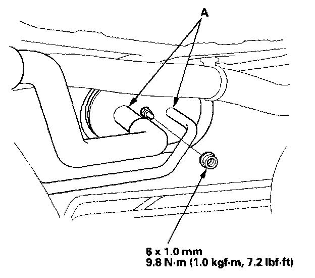 3. Remove the nut, then disconnect the A/C lines (A) from the evaporator core.