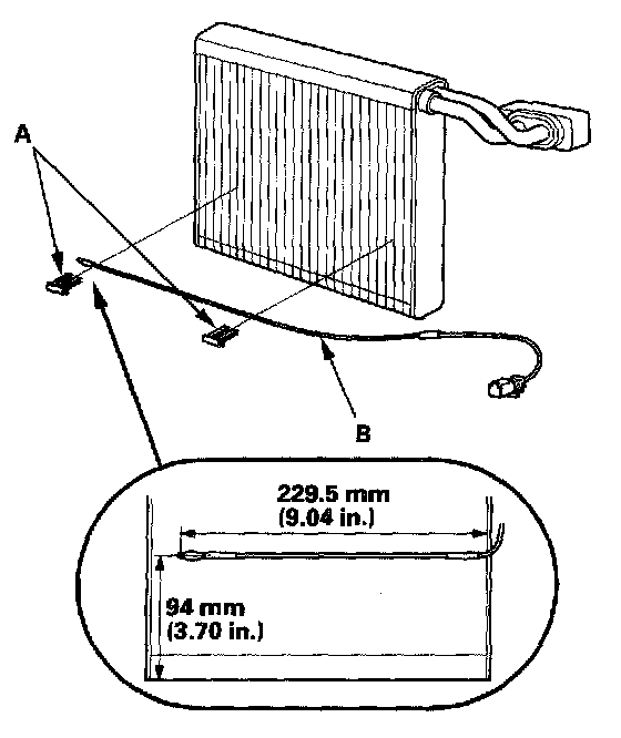 8. Remove the clips (A) and the evaporator temperature sensor (B).
