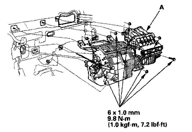 Heater Unit/Core ReplacementSRS components are located in this area. Review the SRS component locations, and the precautions and procedures before repairing or servicing.