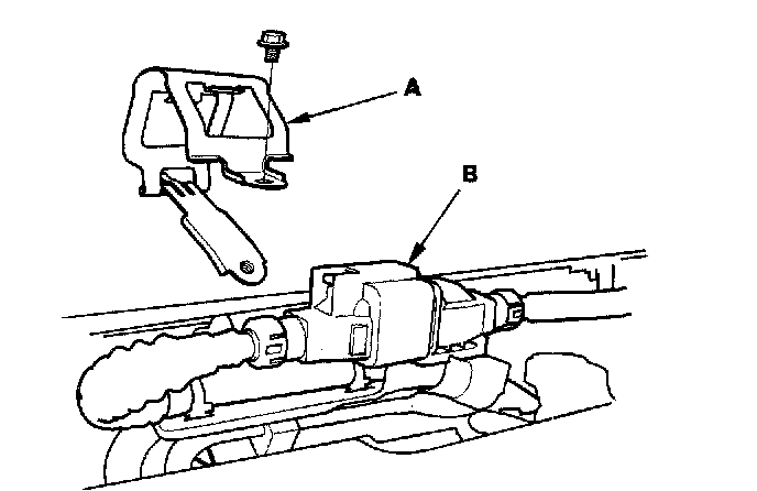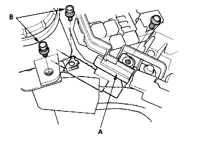 17. Remove the bolts (A), then remove the clamp (B).